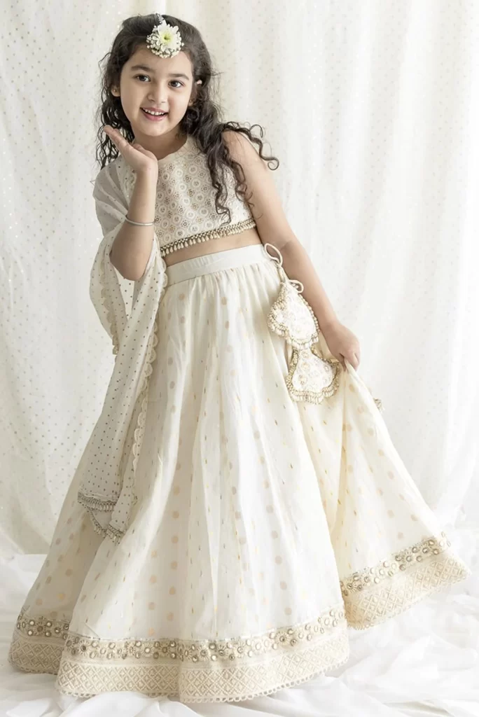 A rich navy blue velvet bodice paired with a silver-flecked organza skirt. Ideal for evening receptions or winter weddings. Comes with a hidden zipper for easy wearing.